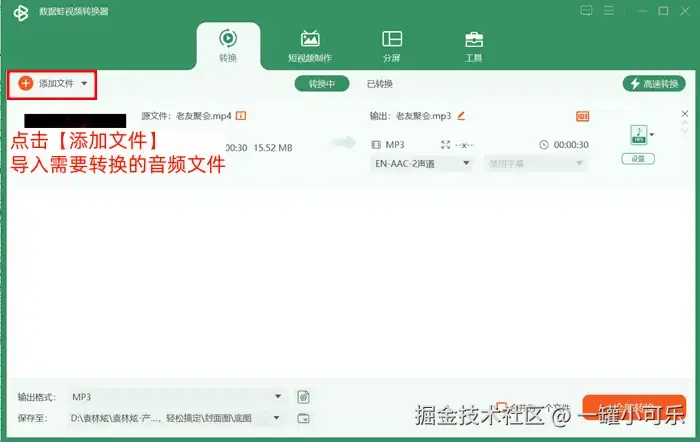 在大家最为关注的转换质量以及数据安全方面,该应用提供了120倍速无损转换技术,可以最大限度地减少对音频音质的损坏;并且,在转换文件格式完成后,用户可以自主删除相关文件,以及操作痕迹,可最大程度上保证用户的数据隐私安全。下面以音频转换成MP3音频格式为例,介绍其具体的操作步骤。