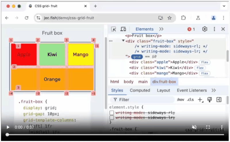 四、Elements > Styles: 支持 sideways-* 排版模式的网格叠加和 CSS-wide 关键字
