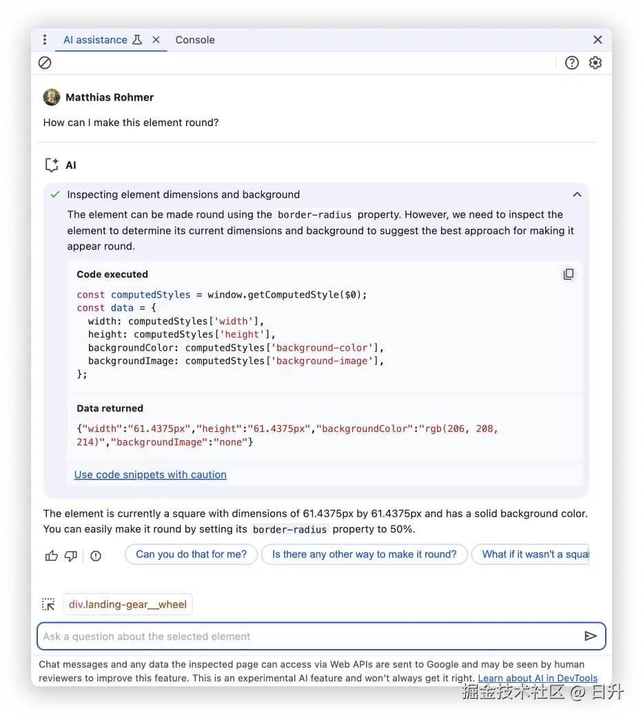 Chrome DevTools 现在推出了一个新的实验性 AI 辅助面板,可以与 Gemini 聊天并获得帮助来调试 CSS。