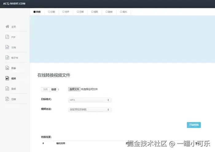 第一步:进入Aconvert网站,选择【视频】选项的【转换】功能。