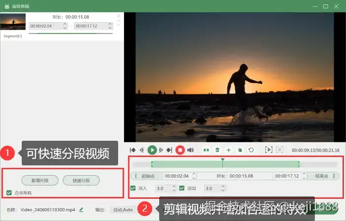 步骤3:录制结束后,点击预览页面的 【完成】 按钮,视频会自动保存到电脑上。也可以进入 【高级剪辑】 模式中对视频进行分段、剪辑等操作后再保存视频。