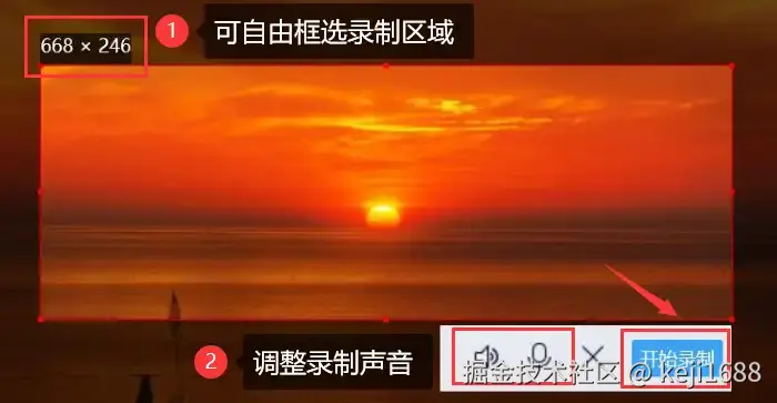 步骤2:在录制开始前,可以自定义录制区域、声音来源等参数,然后点击 【开始录制】 进行录屏。