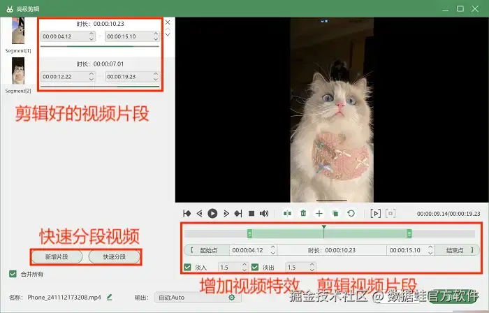 步骤4: 录制完成后,如果有剪辑视频的需求,我们可以使用 “高级剪辑” 工具对视频进行后期编辑操作,如快速分段视频、剪辑需要的视频片段等。