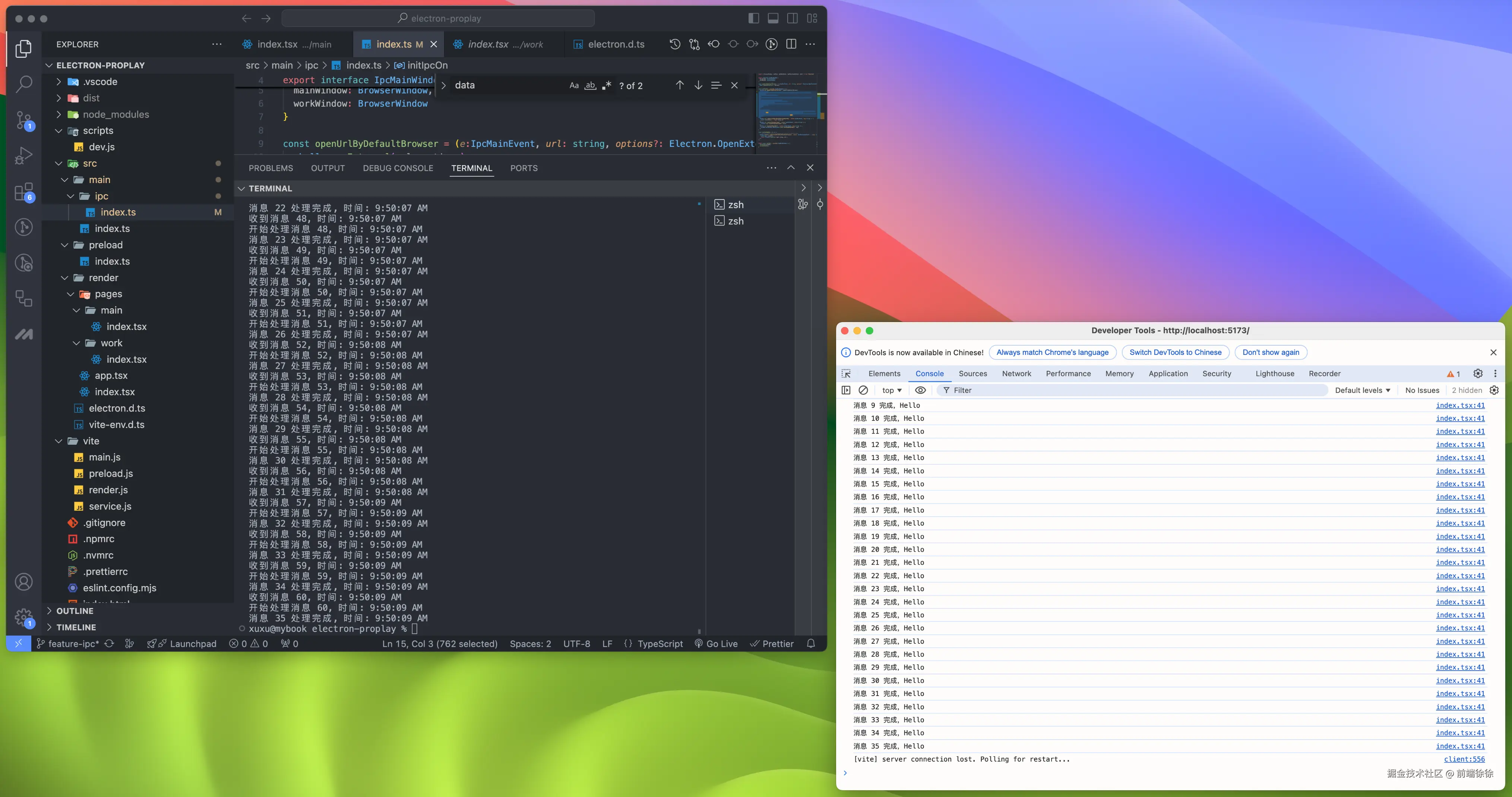 我们在渲染进程发起一个定时任务然后和主进程通信,但是主进程处理消息的速度明显比定时任务的执行频率低,代码如下。