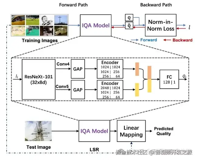 - IQA模型:一个卷积神经网络(CNN),使用ResNeXt-101的架构,提取图像的特征。ResNeXt是一种通过重复残差模块来提取特征的深度CNN。