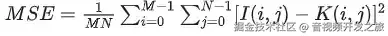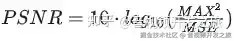 **峰值信噪比(Peak Signal to Noise Ratio, PSNR)**通常用来评价一幅图像压缩后和原图像相比质量的好坏,PSNR越高,压缩后失真越小,可以借助均方误差(Mean Square Error, MSE)来计算,计算公式为:
