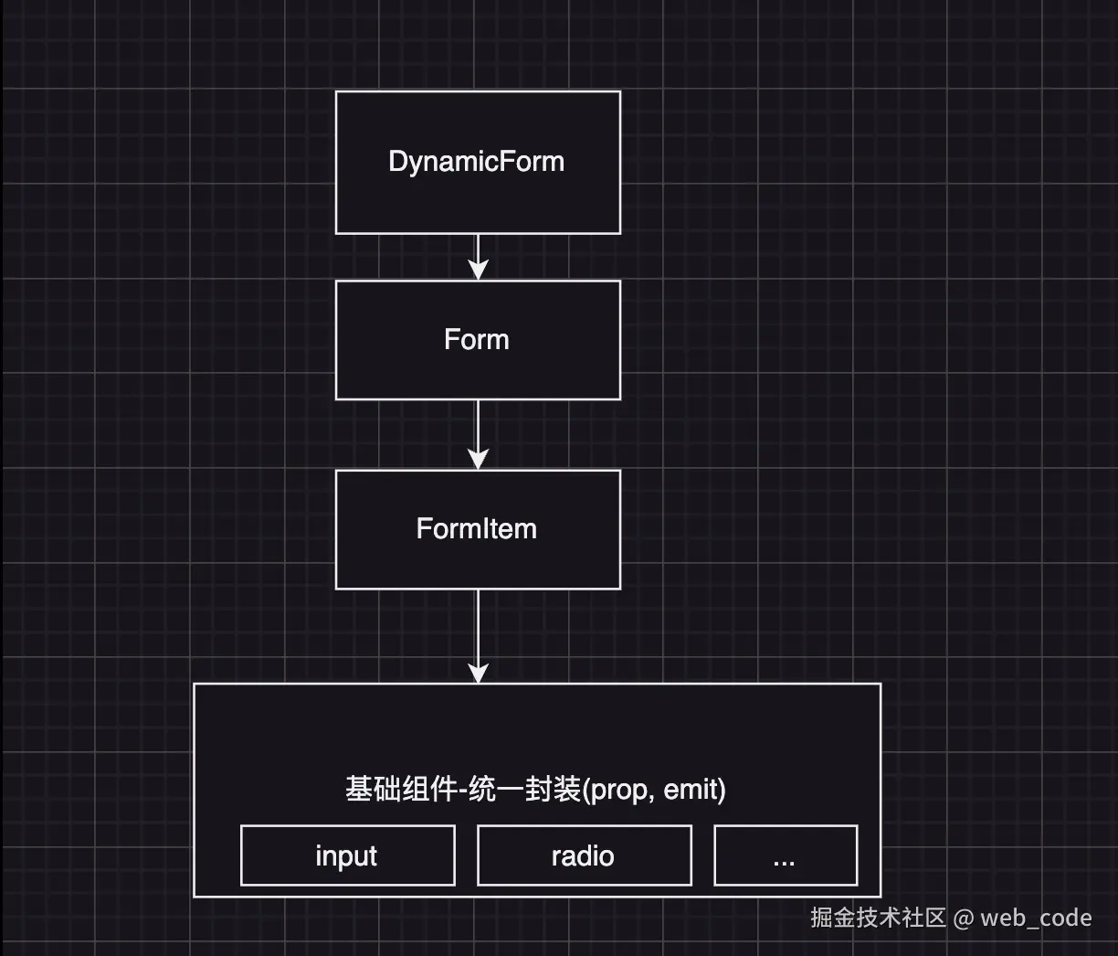 结合配置,可以初始化我们定义的一些基础组件,input, radio,并且我们统一所有组件的输入和输出API上的封装,这样可以在渲染的时候可以统一接入,不需要额外的处理不一致的行为。