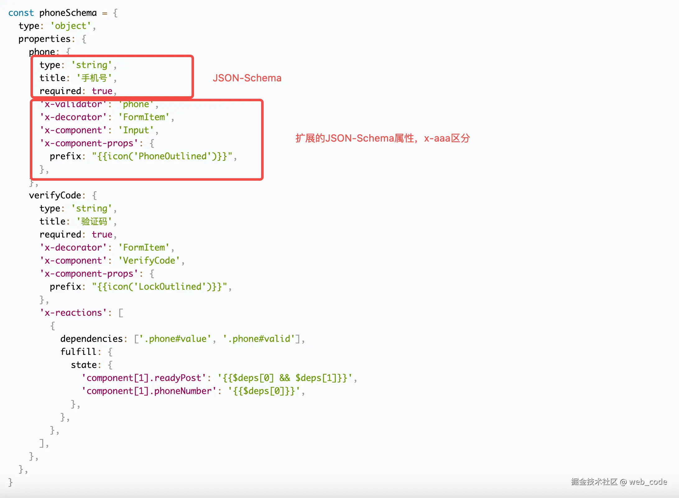 - json-schema做数据层面的描述,扩展其上的属性,xx-aaa用作UI层面的属性表述;