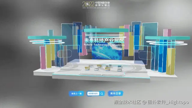 图扑运用 HT 强大的渲染功能,数字孪生各类智慧展览馆,1:1 地复现其内部独特的结构造型和建筑特色。通过应用可视化、WebGIS、倾斜摄影、VR、沉浸式交互等多重技术手段,构建数据共享、信息互通、精准匹配的高精度“展馆展厅”,突破时空壁垒限制。
