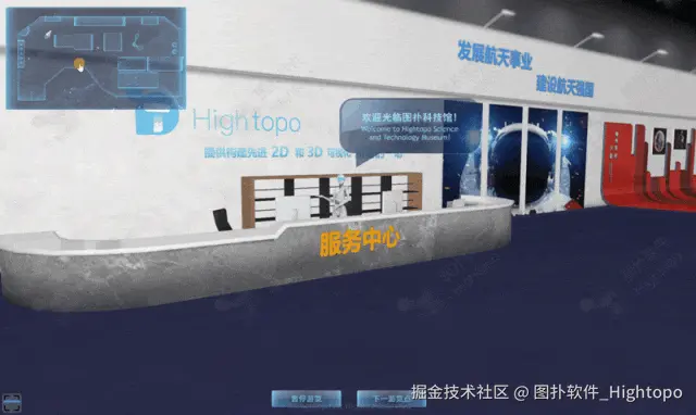 图扑线上展厅充分融合虚拟交互、手柄快捷操作等多种技术手段,按照不同的场景,打造多元化展馆虚拟场景,搭建高质高效的数字化展览平台。