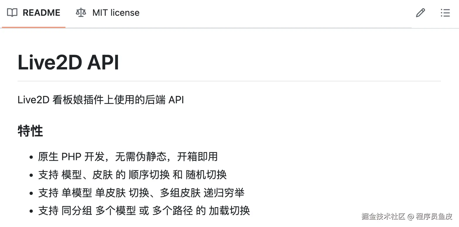 但是,如果你没有两把刷子,估计看不懂那破朔迷离的官方文档。所以呢,要说贴心,还得是咱广大网友,在 GitHub 上开源了不少开箱即用的 Live2D 加载库。