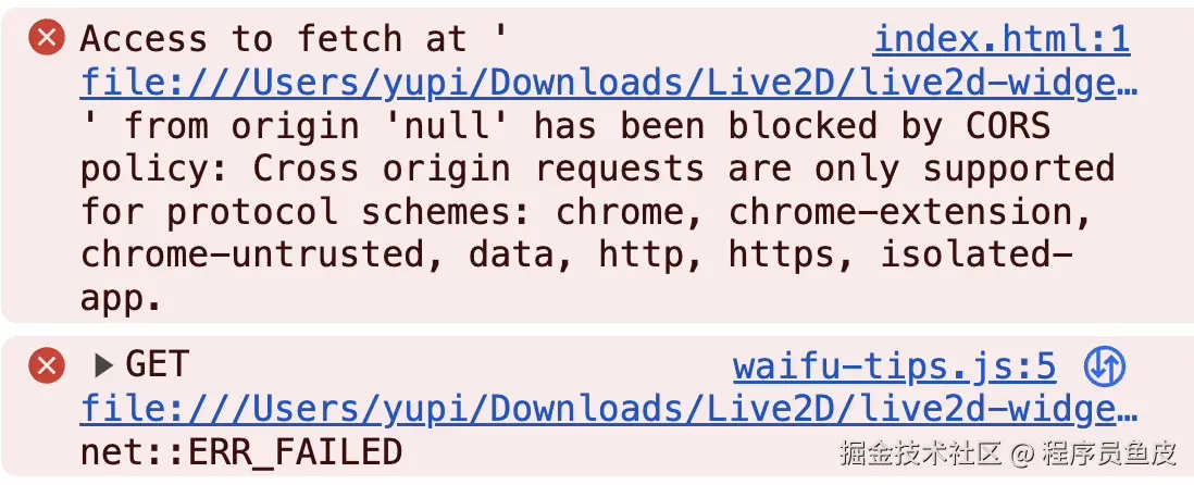 为什么模型没加载出来呢,看下 F12 控制台的报错就知道了:
