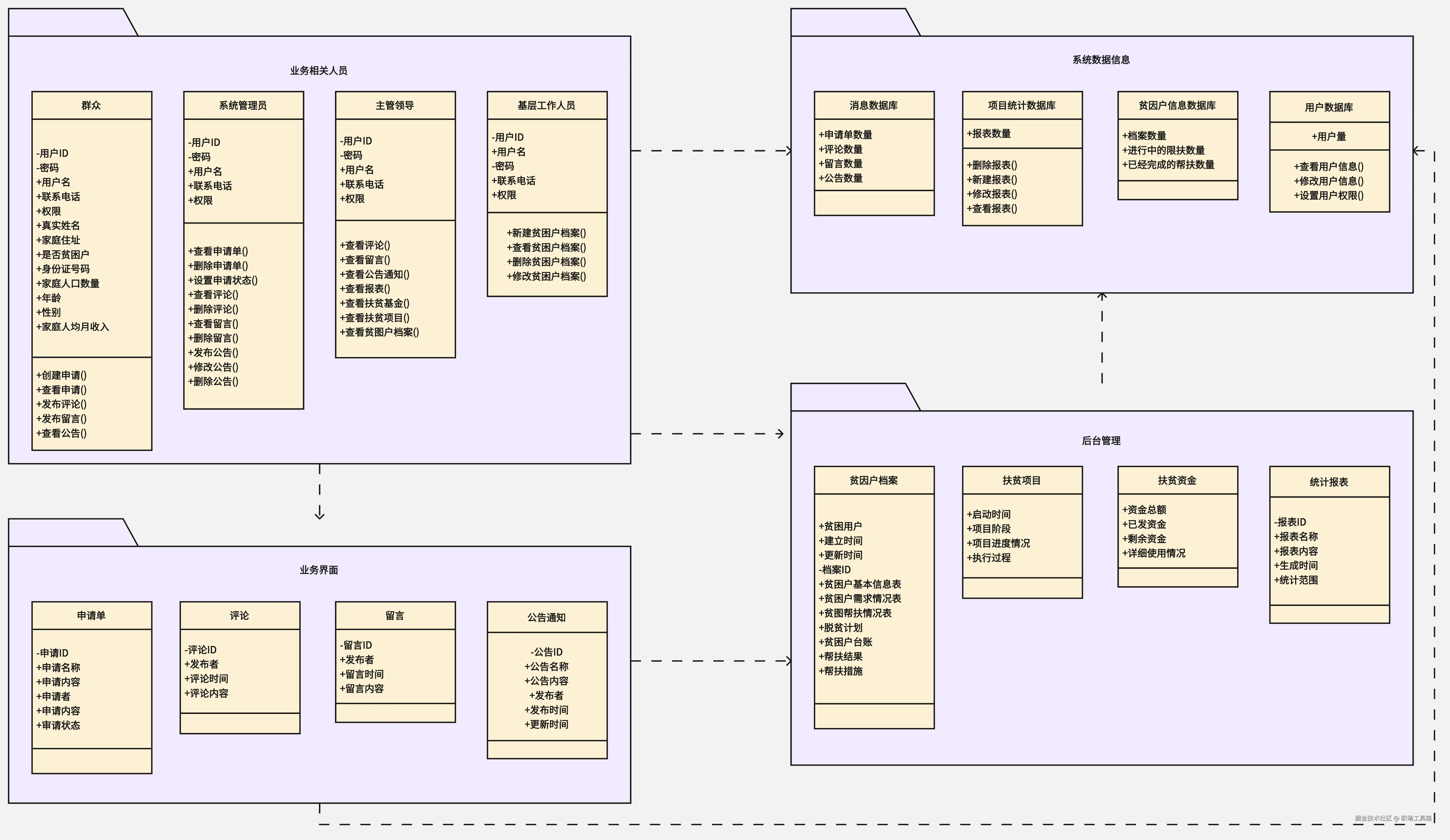 精准扶贫管理系统UML包图是实现扶贫工作精准化的重要工具。这个模板通过UML包图清晰展示系统中各个模块之间的依赖关系和交互方式,帮助团队成员更好地理解系统的架构设计,提高系统的可维护性和扩展性。