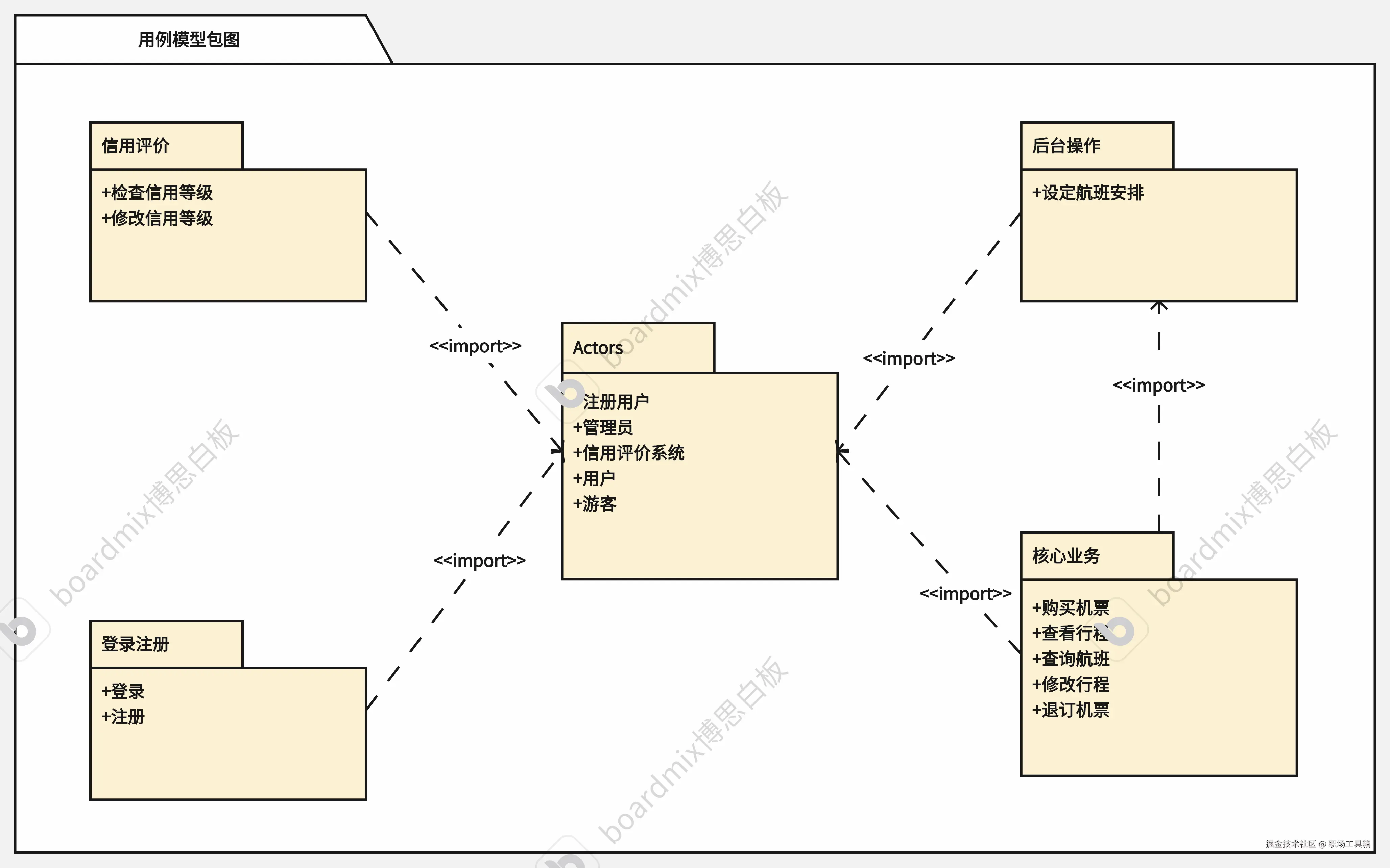 更为通行的做法,是使用现成的UML包图模板,复用UML包图模板的优势在于,只要简单改改UML包图模板的文本,就能在短时间内得到满意的UML包图。