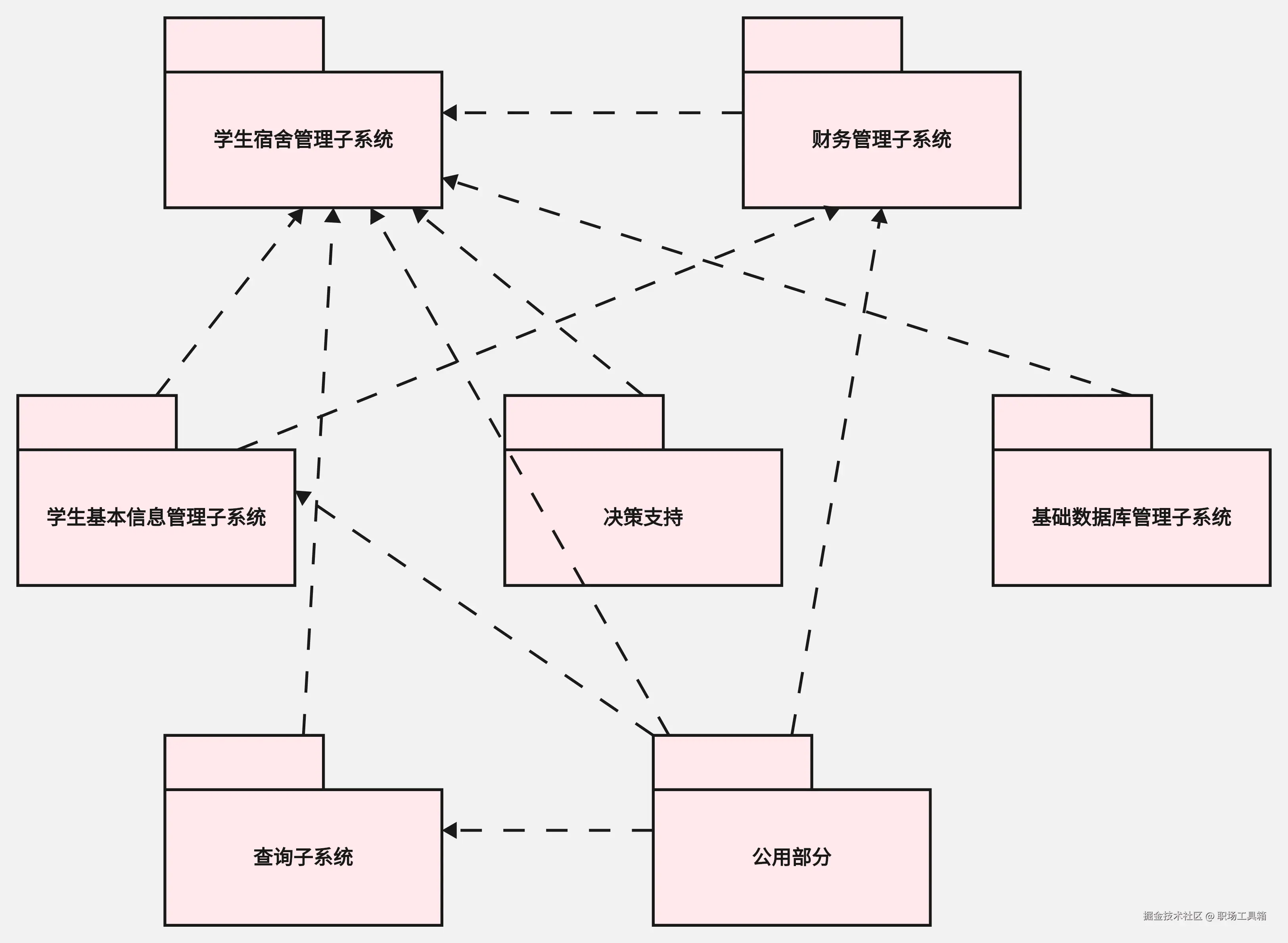 学生宿舍管理系统UML包图是高等教育机构中宿舍管理的有力工具。这个模板使用UML包图来组织模型元素,类似于文件夹的概念,展示了包之间的依赖关系和组织结构,帮助开发人员更好地理解系统的组织架构。