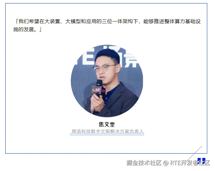 商汤科技数字文娱解决方案负责人焦文奎介绍了商汤科技「日日新」大模型的流式多模态能力及其应用探索。依托强大的算力基础设施(12000P,年底将达 20000P)和约 10TB 的数据(20%为高质量标注数据),「日日新」大模型已迭代至 5.5 版本,重点关注 大装置、大模型和应用的三位一体发展。
