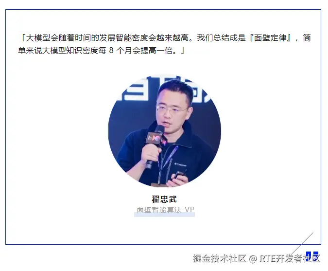 面壁智能算法 VP 翟忠武分享了他们在端侧对话模型领域的突破性进展。面对大模型高昂的推理成本,面壁智能致力于将大模型部署到手机、单片机等低功耗设备,并取得了显著成果。