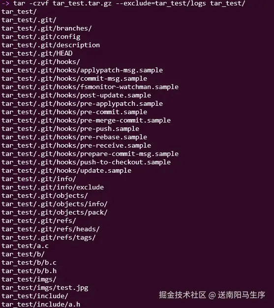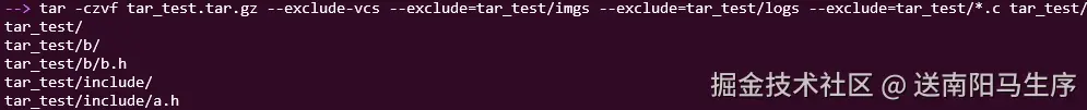 3)只压缩头文件:tar -czvf tar_test.tar.gz --exclude-vcs --exclude=tar_test/imgs --exclude=tar_test/logs --exclude=tar_test/*.c tar_test/