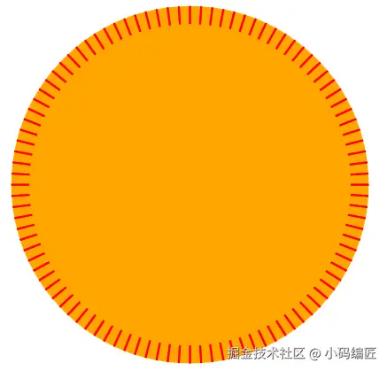 我们把360度分成100分来画出100个刻度线,代码如下