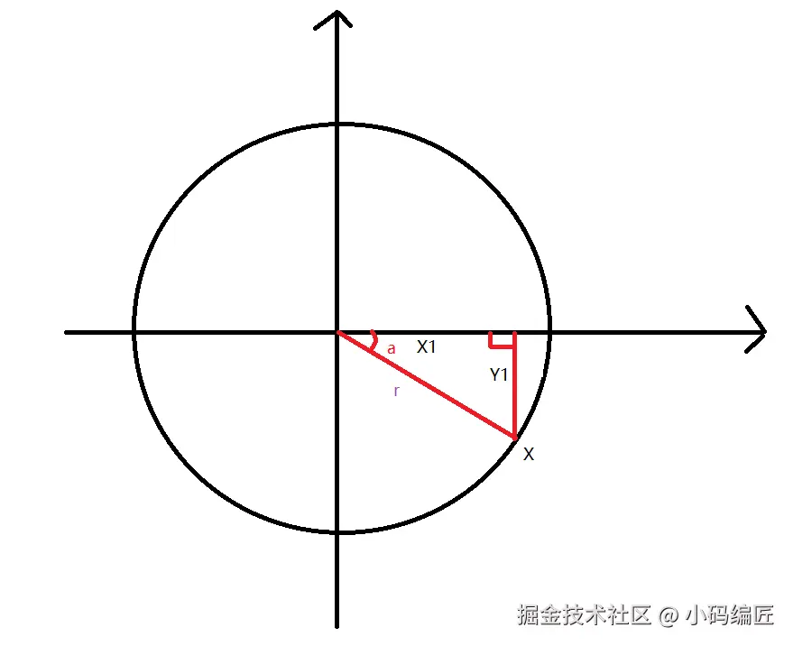 cos(a)=X1/r => X1=r*cos(a)