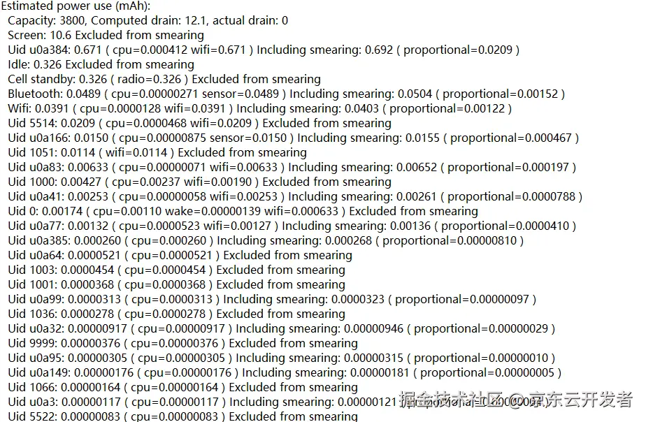 对于系统的电量消耗情况,我们可以通过dumpsys batterystats导出