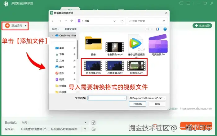 ★ 操作步骤: 单击【选择文件】-选择视频格式-单击转换选项。