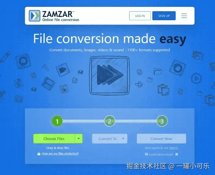 Zamzar既可以转换视频文件间的格式,又能将视频转换成其他文件类型的格式,如将视频转换pdf格式文件。但该网站的免费格式转换功能有限。