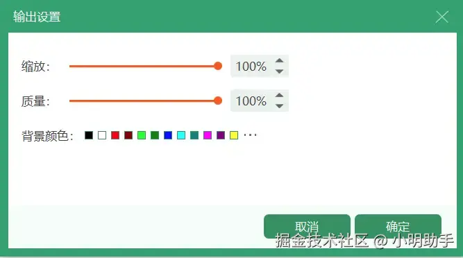 第三步: 点击右上角的【全部转换为】旁边的方框,选择统一的输出格式,有需要的话,可以点击旁边的绿色小齿轮按钮,进行缩放、质量等输出设置。也可以点击每一个图片文件对应的在界面右侧的绿色图标进行单个图片文件的格式和输出设置。