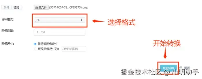 第四步: 在目标格式中选择需要转换的图片格式。点击【开始转换】,等待转换完成后下载转换后的图片文件。