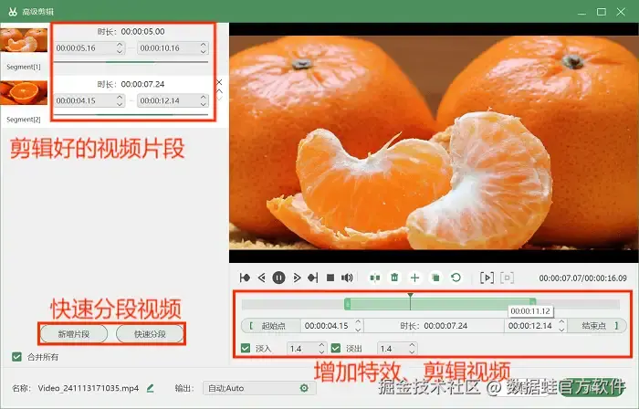 步骤3: 录制结束后,如果需要后期编辑视频,就可以使用 “高级剪辑” 工具对视频进行快速分段、剪辑需要的视频片段等操作。