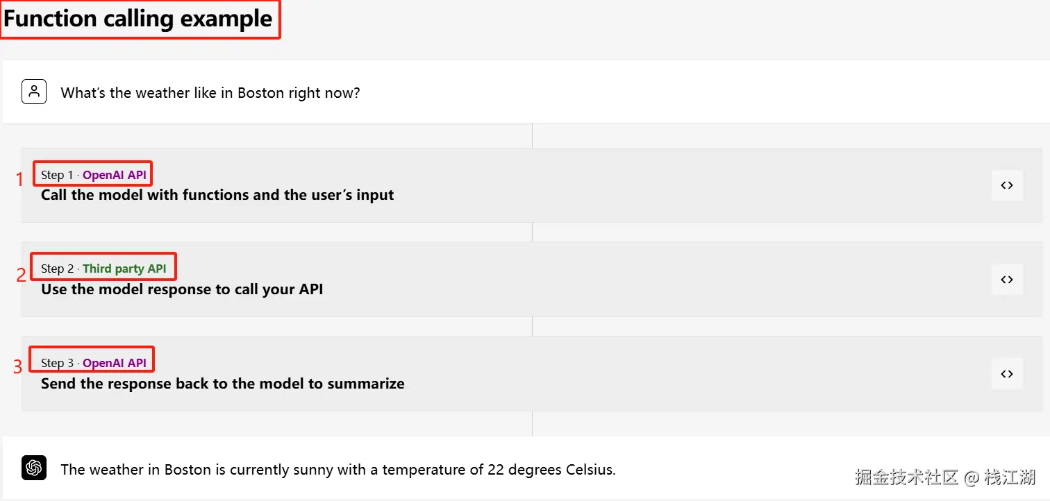 - 模型根据函数返回结果生成最终答案:模型根据函数的执行结果,生成最终的回复或继续进行交互。