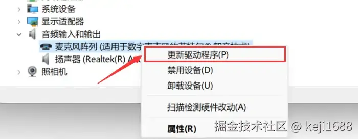 步骤2:右键点击相关设备,选择 【更新驱动程序】 ,根据步骤进行更新即可。