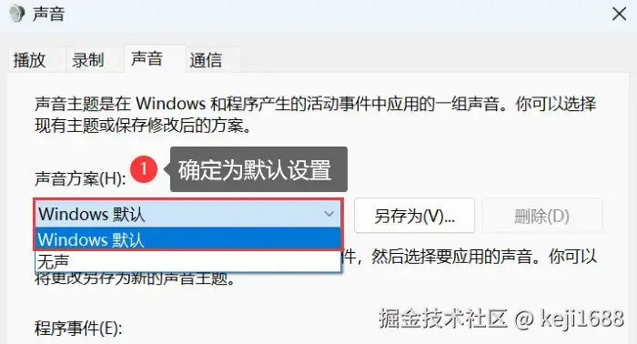 步骤2:在声音设置窗口中,确保已设定正确的默认设备。如果有多个音频设备,请选择您需要使用的设备。