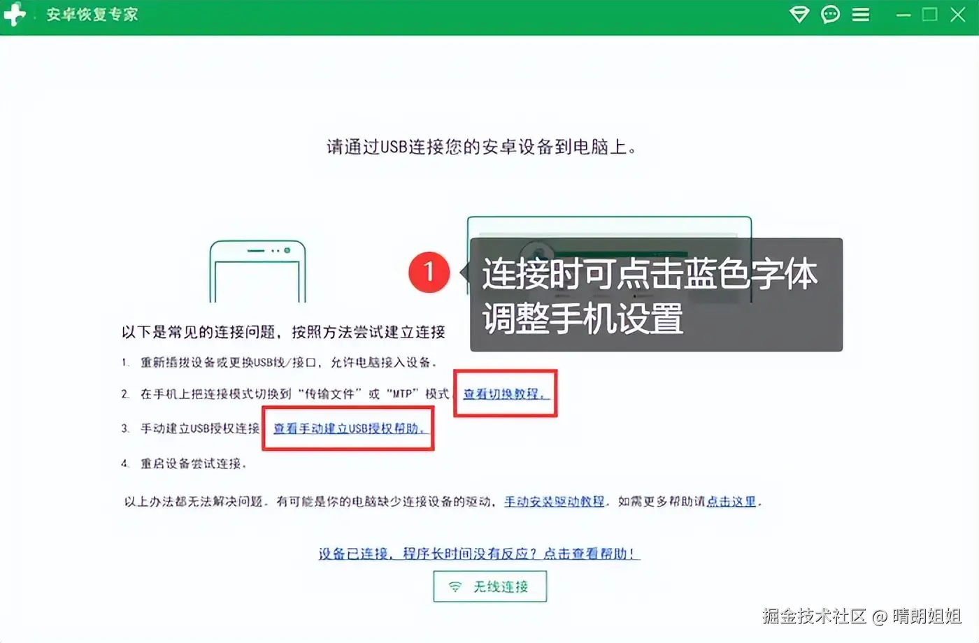 步骤1:设备互连。 打开软件,并按照页面提示,将手机连接至电脑。