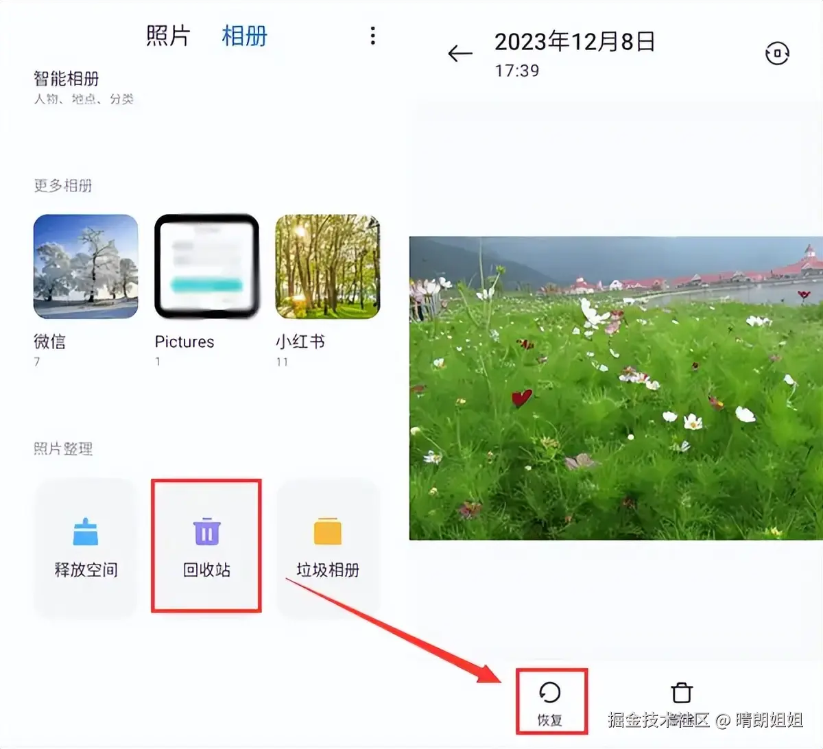 一些安卓手机厂商考虑到误删情况时有发生,于是在系统中内置了回收站功能。至此,用户就有了免费的后悔药,能够适时将重要资料恢复。如果你的手机支持回收站功能,那么误删的照片可能仍然存在于回收站中。你可以这样操作: