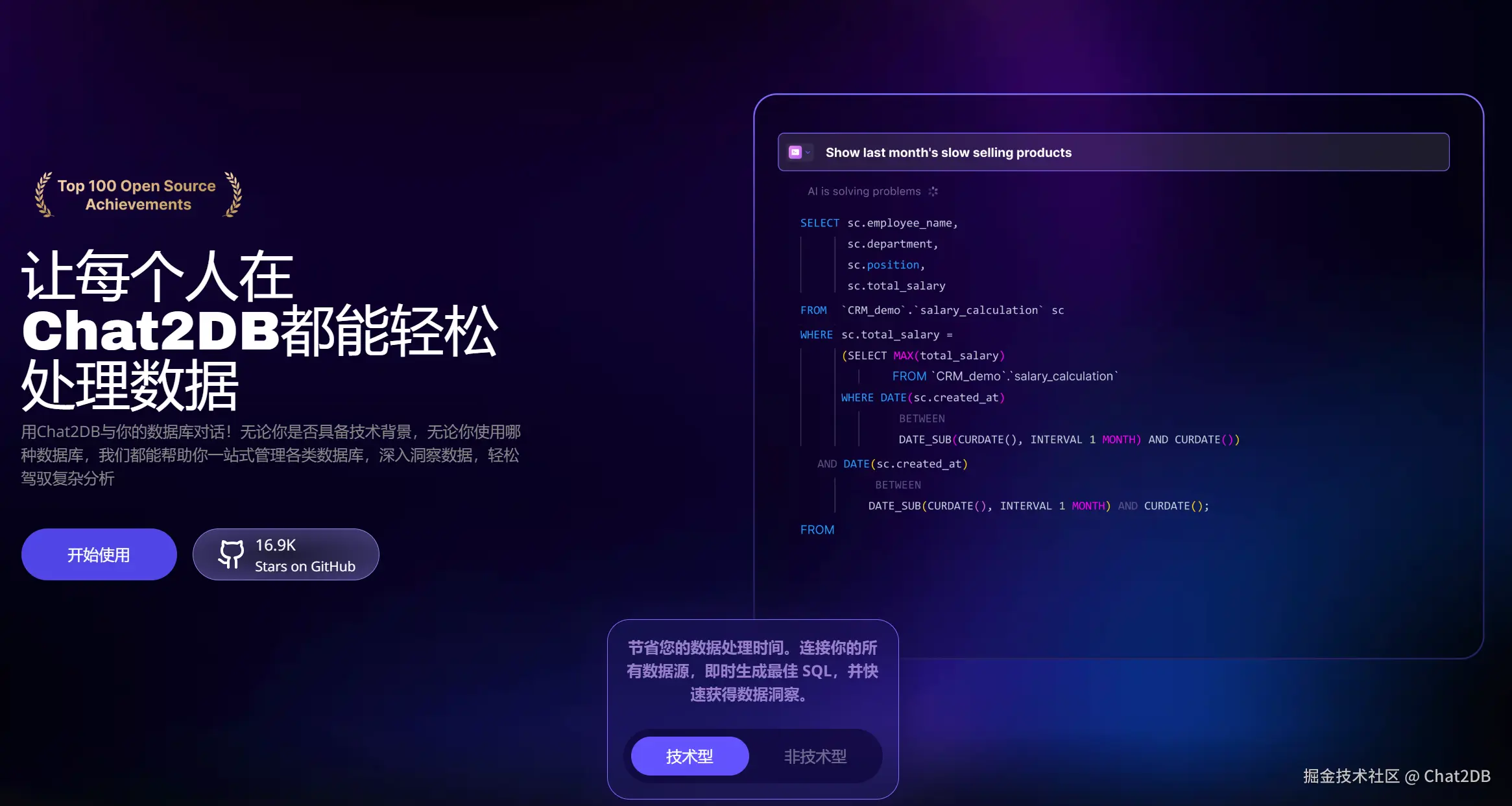 除了上述工具,如果您正在寻找一个更加智能化、易用的数据库管理工具,不妨试试 Chat2DB。Chat2DB 是一款 AI 驱动的数据库管理工具,支持自然语言转 SQL、SQL 优化、SQL 解释、智能 SQL 编辑器、自然语言生成报表和可视化数据分析等功能。无论您是数据库新手还是经验丰富的开发人员,Chat2DB 都能帮助您高效地管理和开发数据库。