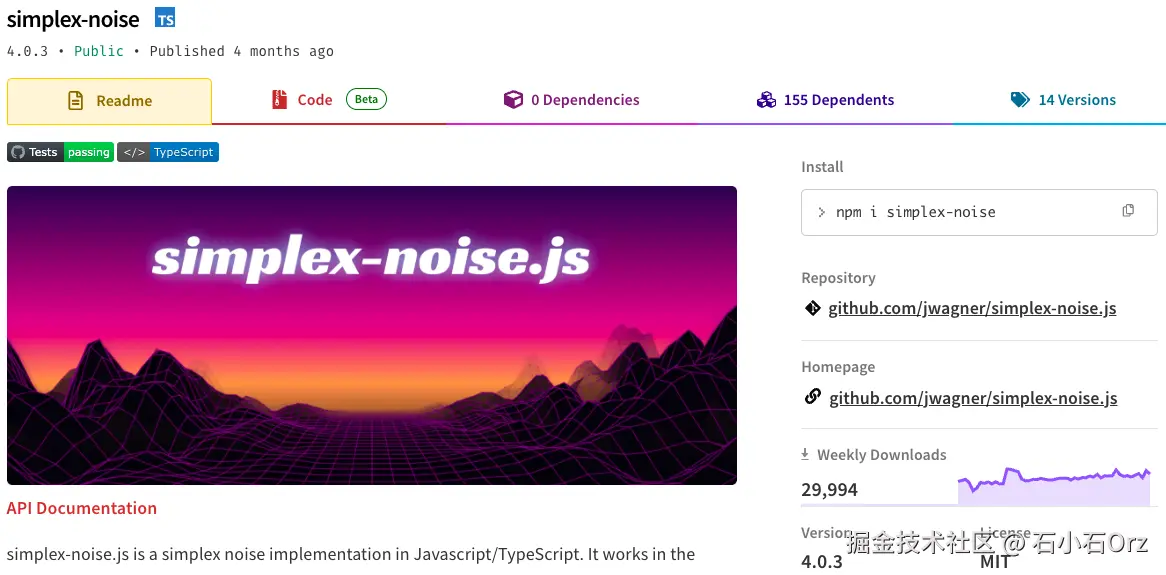 simplex-noise 是一种改良的噪声算法,由 Perlin 噪声的发明者 Ken Perlin 提出。它适合用于生成平滑的伪随机数据,在许多场景中(如自然模拟、动画、程序化生成纹理等)都有应用。