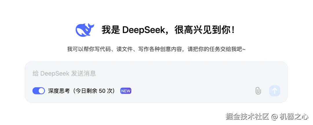 最惊艳的是,发布即上线:所有用户均可通过官网开启与 DeepSeek-R1-Lite-Preview 的对话,但注意要**先在输入框中打开「深度思考」模式,**每天限制 50 次使用。