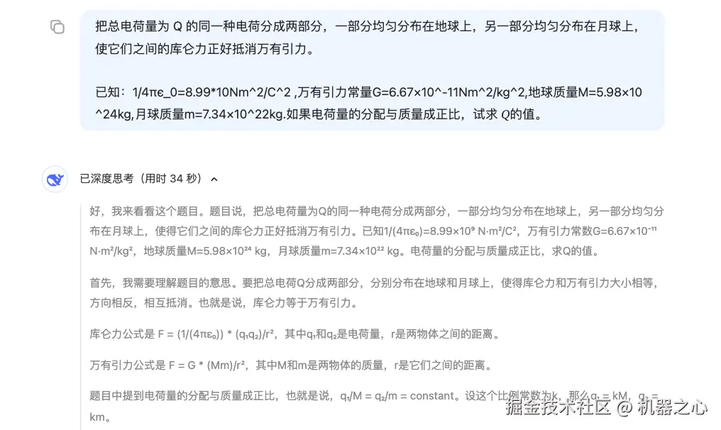 在 34 秒内,它根据题意列出了对应的公式,得到了正确答案: