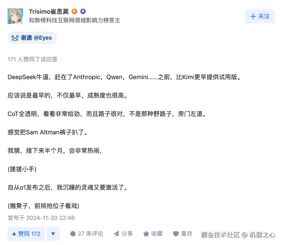 不得不说,对 o1 直接发起冲击的 DeepSeek,着实让国内 AI 社区振奋了一把: