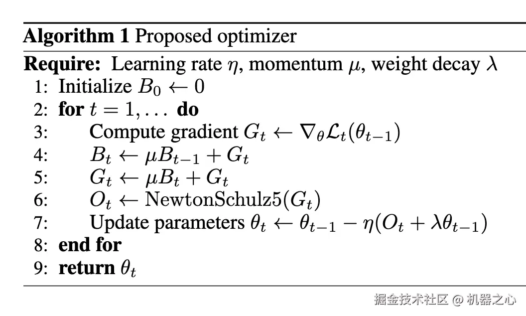 其中 NewtonSchulz5 是 Newton-Schulz 之后的迭代,它近似地用 U @ V.T 替换 G,其中 U, S, V = G.svd ()。
