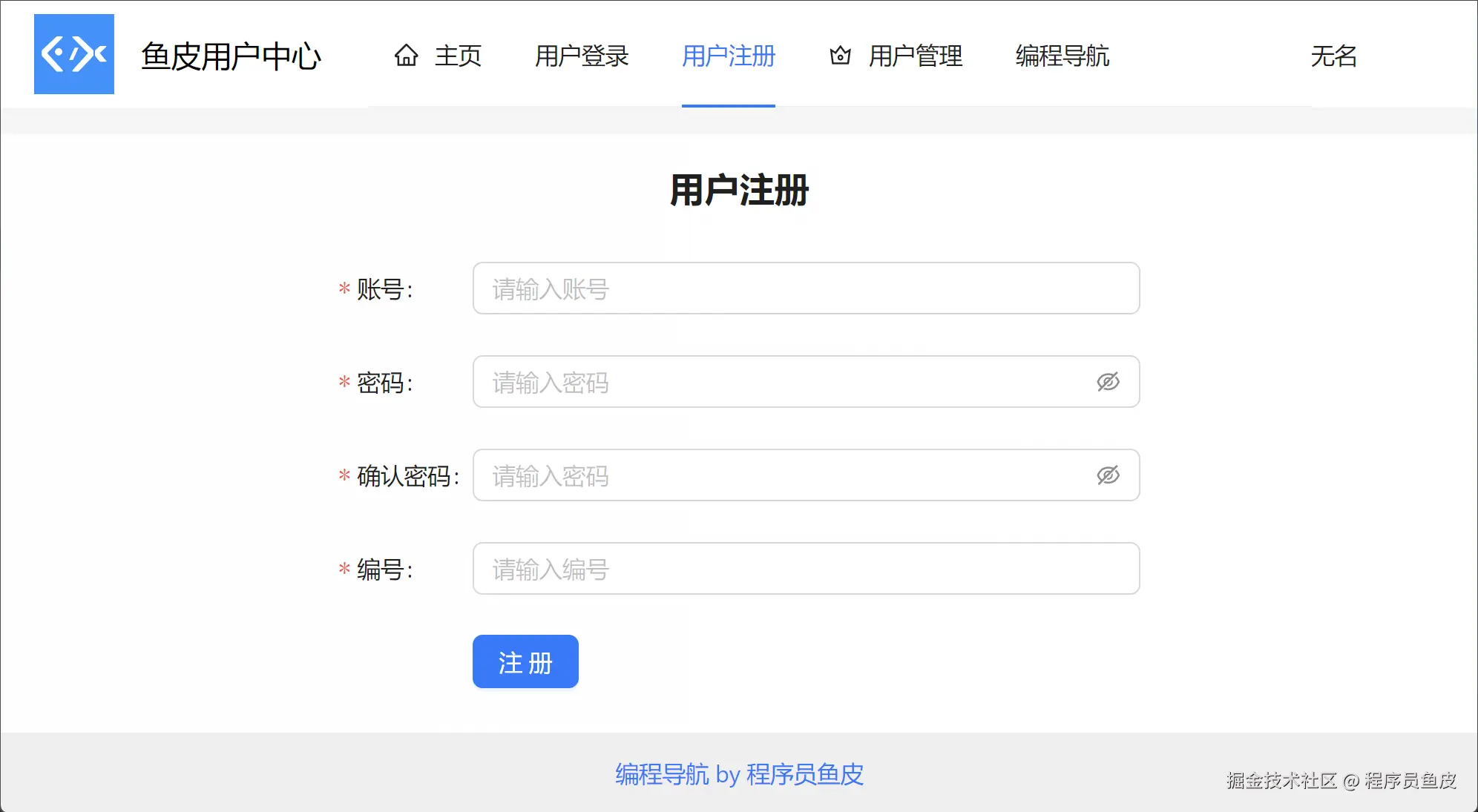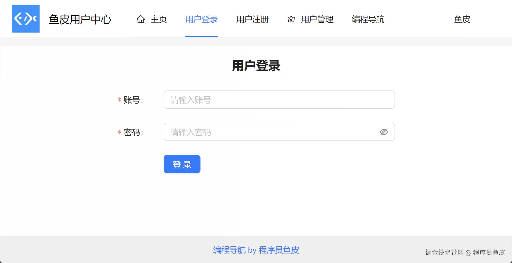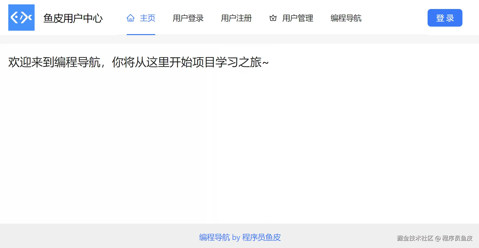 本次的前端教程中,会假设已经完成了用户中心项目后端,并提供了 API 接口,在此基础上去开发前端项目,功能和特性与之前的前端教程(React 框架)保持一致,因此可以单独学习。