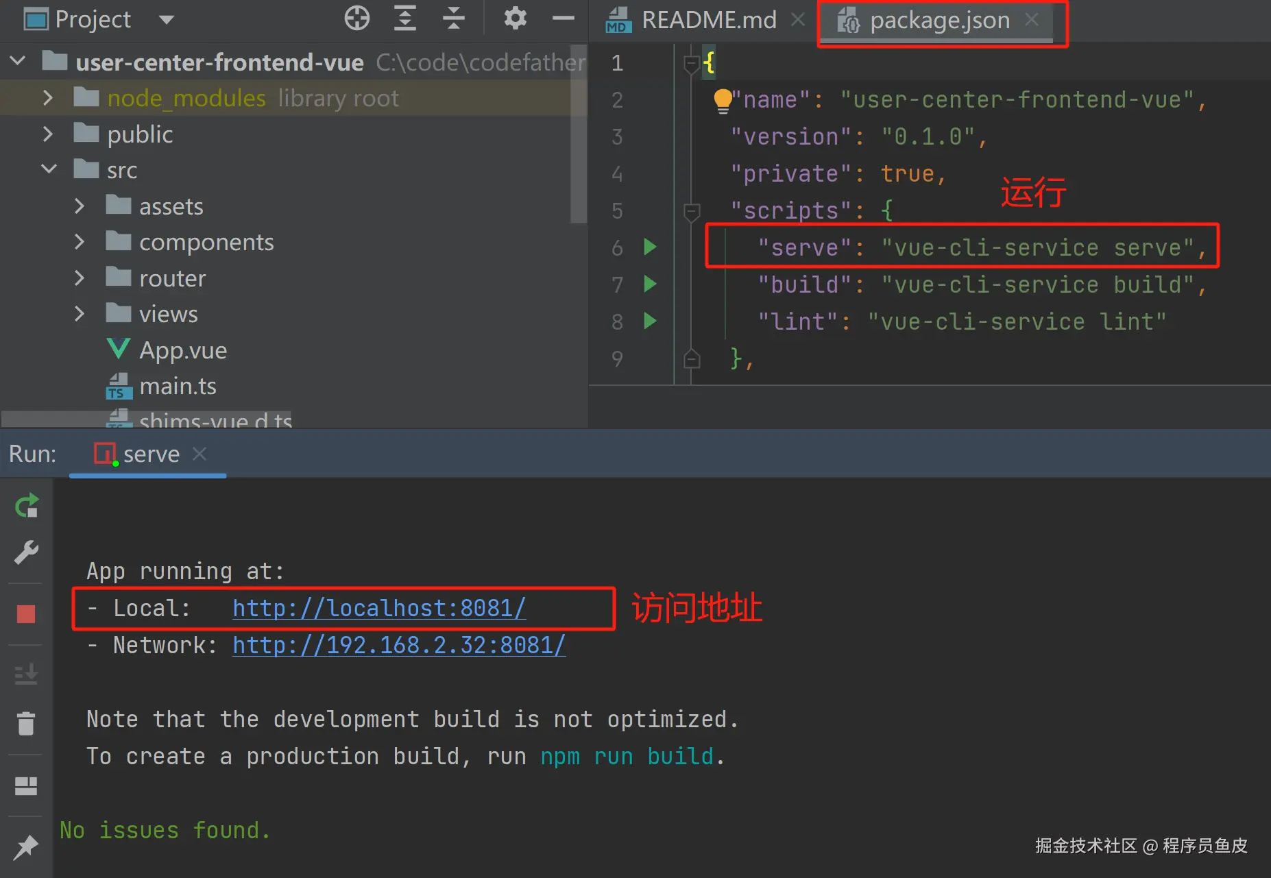 然后用 WebStorm 打开项目,在终端执行 npm run serve,能访问网页就成功了。