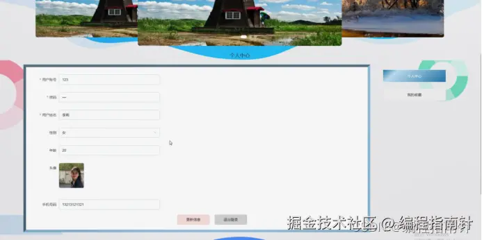 个人中心:在个人中心页面通过填写个人详细信息进行更新信息操作,还可以对我的收藏进行详细操作;如图5-3所示: