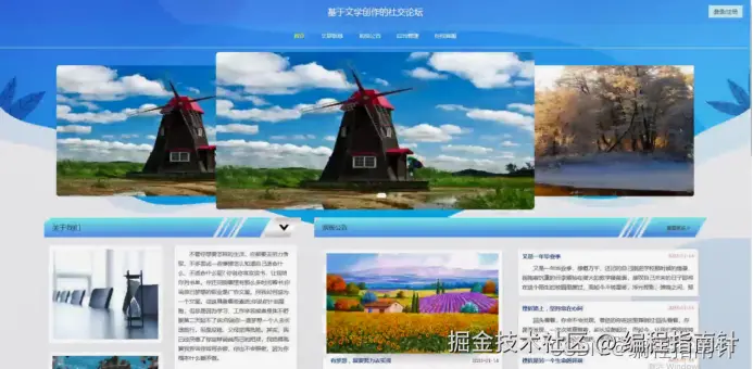 当人们打开系统的网址后,首先看到的就是首页界面。在这里,人们能够看到系统的导航条,通过导航条导航进入各功能展示页面进行操作。系统首页界面如图5-1所示: