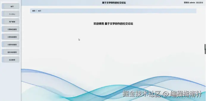 管理员进入主页面,主要功能包括对个人中心、用户管理、文章类型管理、文章信息管理、文章举报管理、警告信息管理、系统管理等进行操作。管理员主页面如图5-5所示: