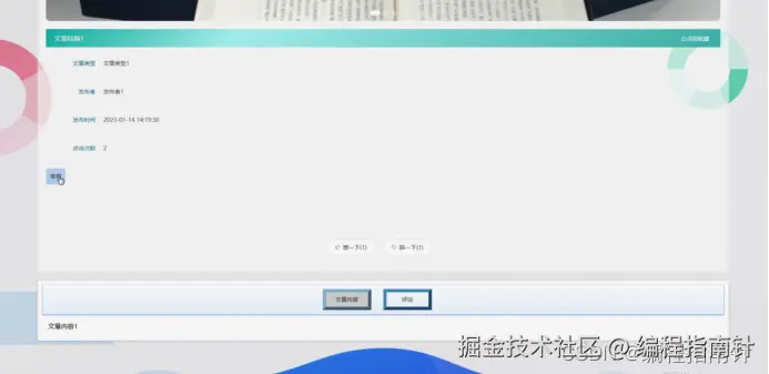 文章信息:在文章信息页面的输入栏中输入文章信息进行查询,可以查看到文章详细信息,并根据需要进行举报、评论或收藏操作;文章信息页面如图5-2所示: