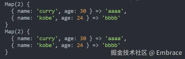 obj.name = 'kobe' names.push('klay') console.log(obj) // { name: 'kobe', age: 30 } console.log(names) // [ 'curry', 'kobe', 'klay' ] // 注意:不能直接给引用类型重新赋值 /* obj = {} // TypeError: Assignment to constant variable. names = [] // TypeError: Assignment to constant variable. */ -
