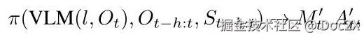 其中 和 分别是模型在时间步 预测的机器人操作的路点和动作。特别地,我们使用预训练的VLM来解析基本动作 。