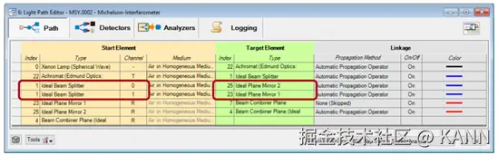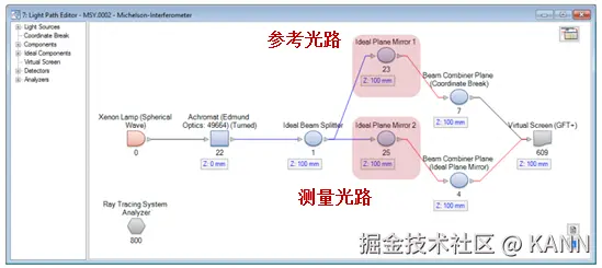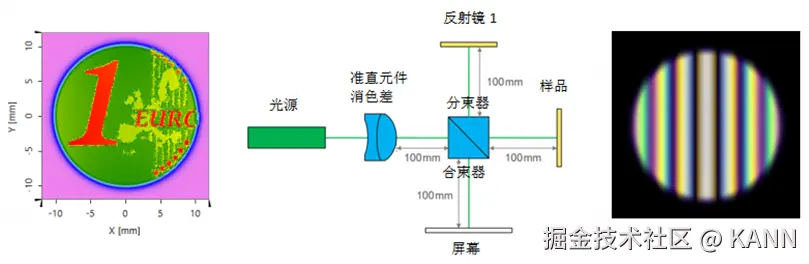 测量系统(MSY.0002 v1.1) 应用示例简述 1. 系统说明 光源— 氙气灯(部分相干白光) 组件— 分束器和合束器,消色差准直透镜系统,平面反射镜,待测样品 探测器— 强度分布表现出不同的干涉效应 建模/设计— 光线追迹:初始系统概览— 几何场追迹Plus(GFT+): 部分相干白光会减少干涉条纹的对比度 扫描样品的高度轮廓时光强会发生变化 2. 系统说明参考光路 3. 建模/设计结果 4. 总结迈克尔逊干涉仪装置白光干涉图案的研究以及作为高度扫描装置的应用1. 仿真以光线追迹对干涉仪仿真。2. 计算采用几何场追迹Plus引擎以计算干涉图样。3. 研究测绘扫描仪的仿真和样本高度轮廓的测量 利用VirtualLab软件可对迈克尔逊干涉仪生成的干涉图案进行研究分析。 应用示例详细内容 系统参数 1. 仿真任务:迈克尔逊干涉仪 通过使用这种干涉仪装置,可测量两光束间的相对光程差。 事实上,结合白光光源的有限相干长度可以研究样品的高度轮廓(轮廓扫描干涉仪)。 2. 参数:光源 为仿真部分相干光,采用一个白光光源(氙气灯)。 应用氙气灯用于模仿太阳光。 这种气体放电灯的辐射的光谱与黑体极其相似。 由于41个波长,光谱的形状是离散的,并具有相应的振幅。 由于输出区域较小,氙气灯可视为点光源,并输出近似球面波。 3. 参数:消色差准直透镜 为了实现光源的准直,使用了一个埃德蒙光学的非球面消色差透镜。 通过使用埃德蒙光学网站上的Zemax文件将消色差准直透镜导入到VirtualLab中。 4. 迈克尔逊干涉仪光路图 增加消色差系统和分束器距离是为了使3D视图更加清晰(可在光路编辑器中实现)。 由于VirtualLab的相对位置系统,必须设置Z轴方向的距离。 5. 分光器的设置 为实现光束分束,采用理想光束分束器。 出于该目的,在光路编辑器中建立两次光束分束器。 随后的组件(如相位延迟板和理想的反射镜)连接到通道0和通道1,对应于光束分束器的两个通道。 6. 合束器的设置 直接通过虚拟屏幕(GFT +)探测器对两束光进行叠加。 为此,必须选择两个输入通道的叠加(Yes),才能得到期望的干涉图。 7. 迈克尔逊干涉仪的3D视图 添加了扩束器和分束器得距离是为了使3D视图更加清晰(可在光路编辑器中实现) 应用示例详细内容 仿真&结果 1. 结果:利用光线追迹分析 首先,利用光线追迹分析光在光学系统中的传播。 对于该分析,采用内嵌的光线追迹系统分析器。 2. 结果:相干光源vs部分相干光采用几何场追迹Plus引擎计算干涉图样。 3. 结果:测量路径长度的变化 对所用白光光源的时间相干性进行研究。 因此,利用参数耦合和参数运行,使测量路径的长度在由199.99mm到200.01mm之间变化。 为生成干涉图样,通过使用绝对方向将反射镜2倾斜0.005° 结果可以以独立的文件或动画进行输出。 由此产生氙气灯的相干长度数量级约为1µm。 4. 轮廓扫描干涉仪 由一个样本替换反射镜2,该样本具有特定的轮廓。 改变路径长度并结合有限的相干长度,可对样本的高度轮廓进行研究。 因此,对于相同的路径长度,接受到的最大光强能够体现高度等级。 相长干涉得到最大光强。 5. 结果:轮廓扫描干涉仪 计算3个不同路径长度的光强分布(200mm,200.1mm,200.2mm)。 被研究的仿真样本(具有浮雕结构的1欧元硬币)表现出3个明显不同的高度级,可通过模拟设置进行说明。 因此,VirtualLab可对这种基于部分相干光干涉测量的轮廓扫描系统进行仿真。 5. 总结迈克尔逊干涉仪及其在高度扫描仪中白光干涉图样的研究4. 仿真以光线追迹对干涉仪的仿真。5. 计算采用几何场追迹Plus引擎以计算干涉图样。6. 研究测绘扫描仪的仿真和样本高度轮廓的测量 利用VirtualLab软件可对迈克尔逊干涉仪生成的干涉图案进行研究分析。 扩展阅读1. 扩展阅读以下文件给出了在VirtualLab中如何设置测量系统的更多细节。 开始视频- 光路图介绍- 参数运行介绍- 参数优化介绍 其他测量系统示例:- 马赫泽德干涉仪(MSY.0001) |